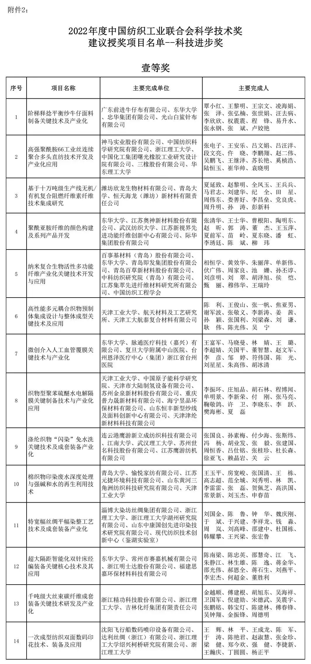 2022年中國紡織工業(yè)聯(lián)合會科學(xué)技術(shù)獎建議授獎項(xiàng)目公示
