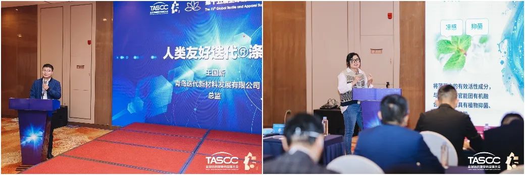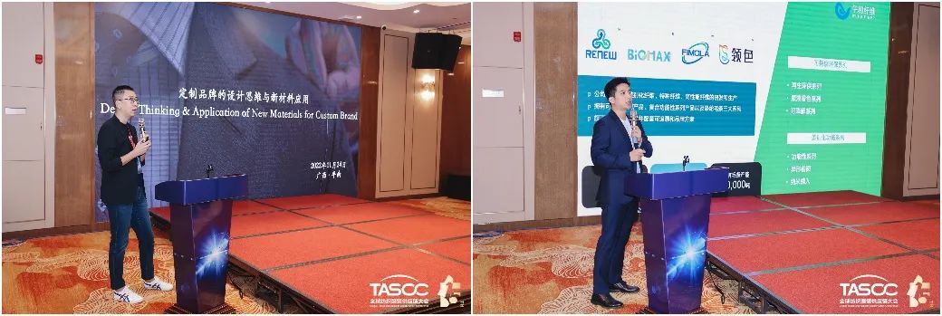 在“紡織服裝新材料供應鏈聯盟會議”中,青島酷特智能股份有限公司紅領品牌設計總監年春橋提出了定制品牌的設計思維趨勢、采買邏輯、新材料應用方向。江蘇垶恒復合材料有限公司總經理喬智介紹了綠色纖維的創新與應用。青島迭代新材料發展有限公司董事長王遵元介紹了迭代滌綸實現的四大優化。青島邦特生態紡織科技有限公司銷售總監宋曉彤則介紹了自主研發的Naturefi系列產品。