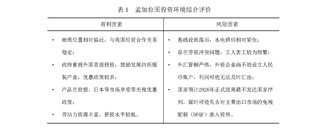 (3)孟加拉國外匯管制嚴格,工人罷工時有發生,作為世界最不發達國家所享受的關稅減免待遇可能隨自身經濟發展被取消,均是投資合作過程中存在的風險。建議我國紡織企業充分考慮風險因素,做好成本核算,全面評估投資項目可行性。