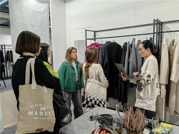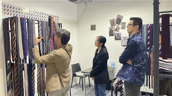 儀式后,雙方領導和嘉賓們一同步入展廳,近距離感受來自中國時尚企業的產品與工藝。此次諸多企業不僅帶來了最為優勢的產品和技術,同時在產品選擇和展陳方式上,也帶有了明顯的中國文化元素,成為展會一道亮麗的“風景線”。