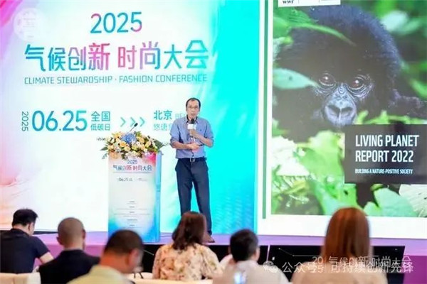 在主題一“價值鏈:時尚產(chǎn)業(yè)氣候創(chuàng)新路徑”部分, 世界自然基金會(瑞士)北京代表處上海區(qū)域項目主任任文偉分享了其在紡織行業(yè)綠色轉(zhuǎn)型的戰(zhàn)略與實踐。他在分享中指出,紡織行業(yè)作為全球供應(yīng)鏈最復(fù)雜的行業(yè)之一,從設(shè)計、原料到消費、回收的全鏈條均蘊藏巨大減碳空間。WWF通過開發(fā)涵蓋評估、供應(yīng)鏈分析、戰(zhàn)略結(jié)合及政策披露的完整工具體系,已與安踏集團等品牌合作推動綠色轉(zhuǎn)型。例如,與安踏集團的合作包括共同致力于落實聯(lián)合國2030可持續(xù)發(fā)展目標(SDGs),推動紡織行業(yè)可持續(xù)發(fā)展、生物多樣性保護與公眾傳播等領(lǐng)域的工作。此外,雙方還利用水管理創(chuàng)新方法,對供應(yīng)鏈進行水風險綜合評估,提高供應(yīng)鏈應(yīng)對水風險的韌性,助力產(chǎn)業(yè)鏈上下游推進綠色轉(zhuǎn)型。他強調(diào),全球氣候變化與生物多樣性喪失兩大挑戰(zhàn)緊密關(guān)聯(lián),需借助綠色生產(chǎn)與消費的協(xié)同作用,促使行業(yè)實現(xiàn)從‘綠色’到‘精益’的轉(zhuǎn)型升級。