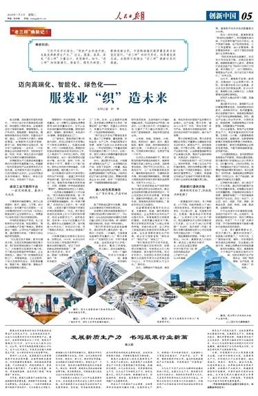 7月2日,《 人民日報海外版 》以《邁向高端化、智能化、綠色化——服裝業“織”造未來》為題,報道了紡織服裝業煥新發展成果.