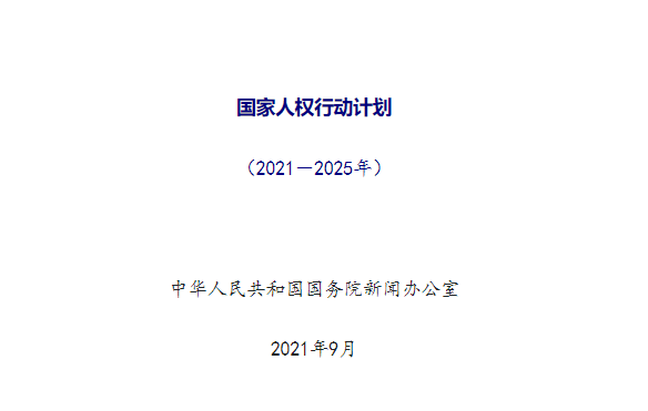 國務院新聞辦公室9月9日發布了《國家人權行動計劃(2021-2025年)》。行動計劃共分導言,經濟、社會和文化權利,公民權利和政治權利,環境權利,特定群體權益保障,人權教育和研究,參與全球人權治理,實施、監督和評估8個部分。
