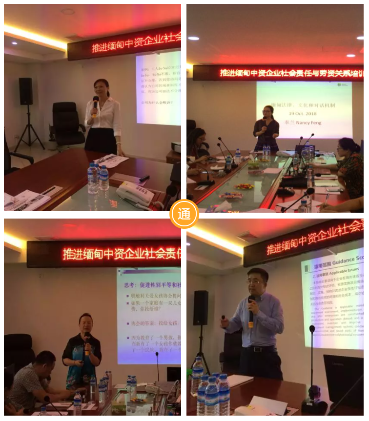 提升中資企業(yè)的社會責任意識和能力,是響應黨中央關于“一帶一路”民心相通的號召,更好地服務于構建人類命運共同體的具體行動。為期兩天的培訓活動就海外企業(yè)社會責任的最新發(fā)展趨勢、企業(yè)性別平等、緬甸經(jīng)商環(huán)境、緬甸最新勞動法、健康安全和環(huán)境保護等法律法規(guī)進行了詳細的宣講。針對紡織服裝企業(yè)女工人數(shù)占比眾多的特點,本次培訓邀請了中紡聯(lián)社責辦專家劉明輝教授就建立工廠性別平等的溝通機制,展開了專題演講,詳細講解了企業(yè)如何建立員工溝通機制,幫助女性員工了解掌握就業(yè)性別歧視的表現(xiàn)形式、取證技巧、投訴渠道和救濟途徑,提高女性自我保護和依法維權的理念意識,營造良好的社會環(huán)境,改善企業(yè)人力資源管理、提高社會責任意識,打造平等就業(yè)環(huán)境?;诰挼槲幕臏贤ê凸芾頇C制和促進企業(yè)勞資關系對話,來自SMART Myanmar的奉蘭老師進行了全面專業(yè)權威的解讀,為參加培訓的中資企業(yè)及時了解緬甸的最新法律、法規(guī),建立有效的對話河溝通機制,及時消除危機,應對潛在風險。來自英國道德貿(mào)易組織ETI的高燕女士就ETI的基本守則和社會責任要求進行了宣貫。參加培訓的眾多企業(yè)代表紛紛表示:通過本次培訓企業(yè)提高管理水平和管理者的綜合素質(zhì),培訓活動是一個跟行業(yè)優(yōu)秀企業(yè)學習和借鑒的重要平臺和窗口,期待專題培訓能夠持續(xù)進行。來自新華社、央視、國際廣播電視臺的記者進行了跟蹤報道。