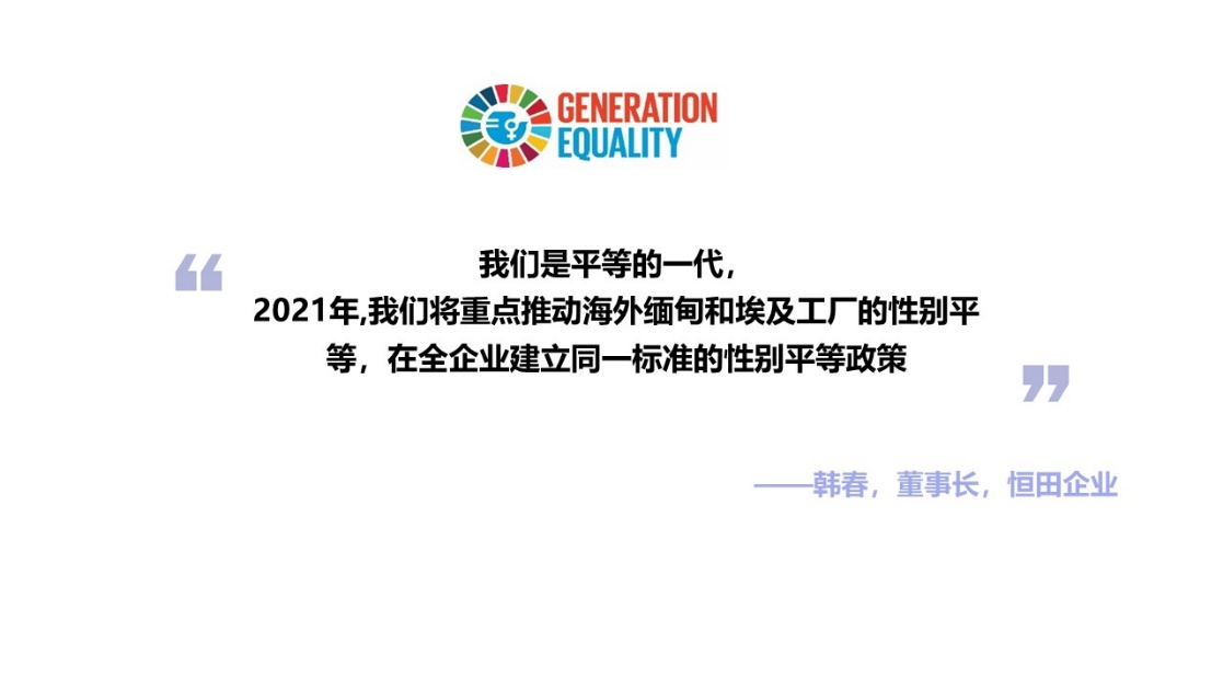 2020年,中紡聯參與聯合國婦女署WE Empower Asia項目,在行業內大力推廣《賦權予婦女原則(WEPs)》,截至2020年12月,包括中國紡織信息中心在內的91家行業企業簽署了《賦權予婦女原則首席執行官聲明》,承諾在企業層面落實“賦權予婦女原則”,以促進工作場所、市場和社區中的性別平等。