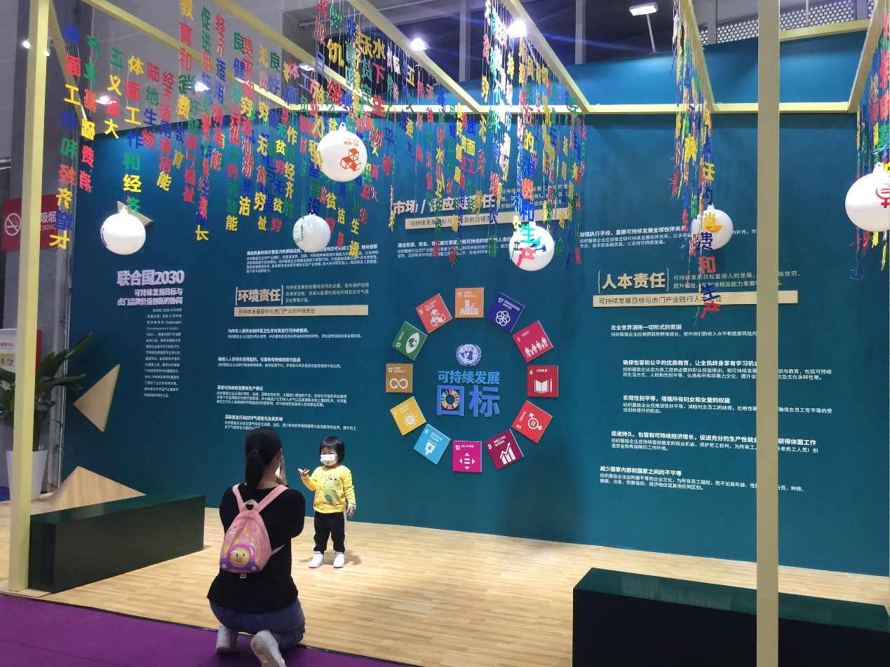 當今世界正經歷百年未有之大變局,新一輪科技革命的沖擊,再加上依然蔓延的全球新冠疫情,全球經濟增長動力不足,人類社會面臨嚴重挑戰。聯合國可持續發展目標(Sustainable Development Goals,即SDGs)成為破解當前全球性問題的“金鑰匙”,指導全球經濟發展和人類社會進步,是國際秩序重構的重要工具,更是行業重塑國際競爭新優勢的重要抓手。中國政府高度重視SDGs,與國家中長期發展戰略進行有機結合,確立了創新、協調、綠色、開放、共享的五大發展新理念。今年9月21日,在聯合國成立75周年紀念峰會上又重申了,要以落實《2030年可持續發展議程》為契機,平衡推進安全、發展、人權。并承諾2030年二氧化碳排放達到峰值,力爭到2060年實現碳中和目標。 虎門服裝產業集群自從2006年首批參與中國紡織服裝行業社會責任建設以來,企業的社會責任管理能力得到了增強,產業的可持續發展理念得以培育,品牌的責任競爭力和時尚話語權得到提升。可持續發展理念重塑虎門服裝產業的價值新形象,“虎門品牌責任競爭力與產業可持續發展創新展示專區”,精選了60個虎門地區的品牌,作為虎門社會責任管理和可持續發展的優秀代表。展區按照人本責任、環境責任和市場責任三個維度,歸納整理了12個SDGs目標對標虎門品牌的責任價值和可持續發展理念。