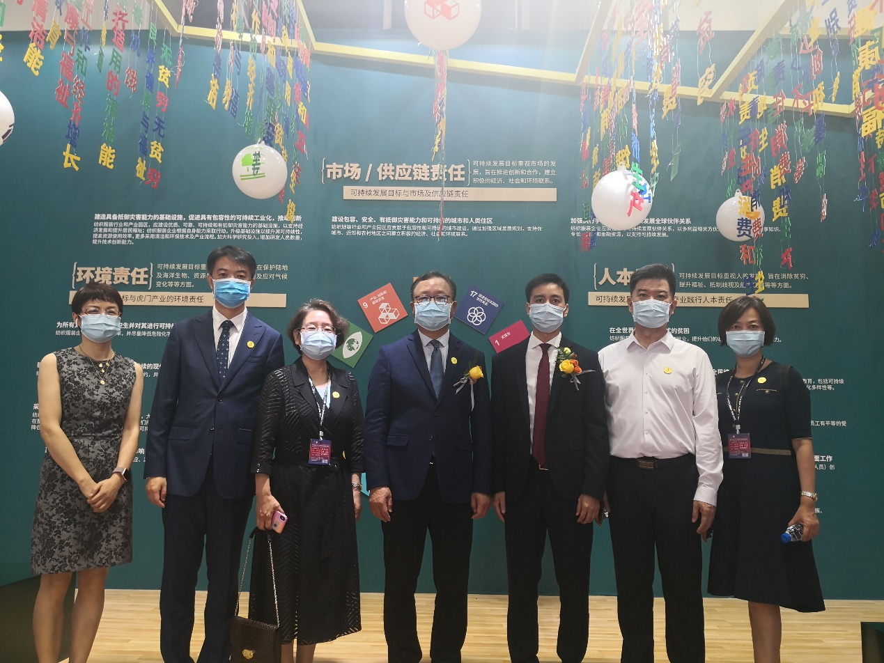2020年11月19日至22日,由中國紡織工業聯合會社會責任辦公室與虎門服裝管委會合作的“虎門品牌責任競爭力與產業可持續發展創新展示專區”,亮相第25屆中國(虎門)國際服裝交易會暨虎門時裝周。中國紡織工業聯合會和虎門鎮政府的相關領導和參展嘉賓參觀展示專區并合影留念。