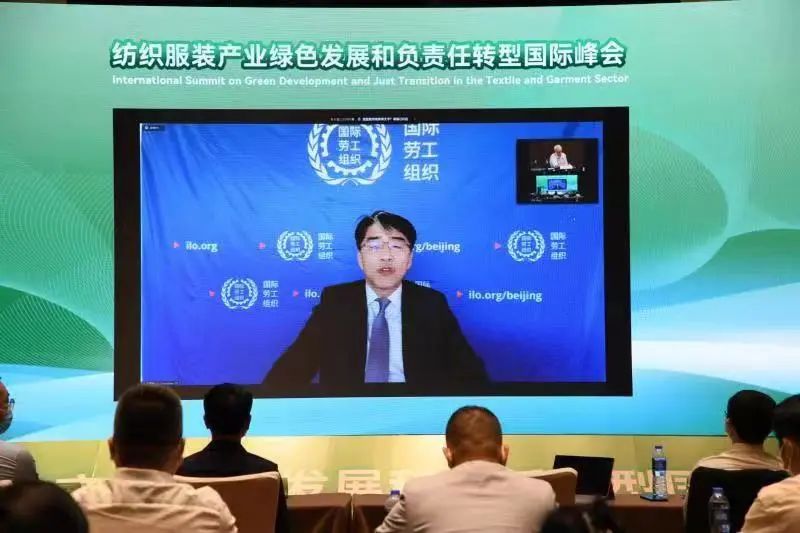 國際勞工組織北京局局長李昌徽發表線上講話并對中國紡織服裝產業走綠色化發展和積極開展行業社會責任建設工作的成就表示了積極肯定和贊賞。并表示本次峰會的舉辦為與會人員提供了分享知識、交流見解的平臺,并且提出了行業綠色發展和公平轉型的愿景,將更好地促進中國、亞洲和全球該行業的綠色發展和責任轉型。