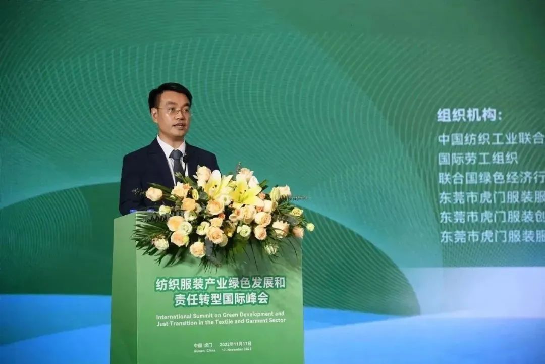 11月17日下午,由中國紡織工業聯合會、國際勞工組織與虎門鎮人民政府聯合主辦的“2022紡織服裝產業綠色發展和責任轉型國際峰會”在虎門舉行,來自全球16個國家的與會嘉賓共同探討了紡織服裝產業綠色發展與責任轉型的有效路徑、政策舉措和最佳實踐。