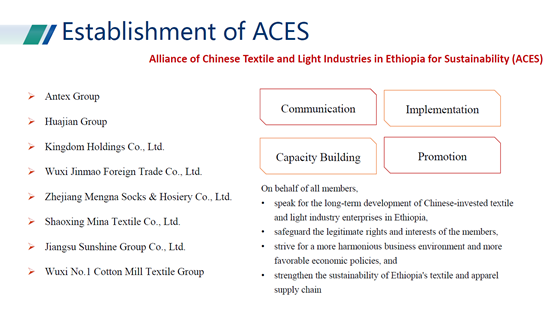 “中國(埃塞)紡織輕工企業(yè)可持續(xù)發(fā)展聯(lián)盟”會(huì)員和宗旨 會(huì)議還討論了項(xiàng)目后期進(jìn)一步提升埃塞俄比亞紡織業(yè)可持續(xù)發(fā)展能力的計(jì)劃,并提出了明確的工作構(gòu)想與實(shí)施路徑。