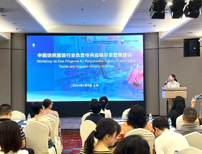 2024年7月9日,中國紡織工業(yè)聯(lián)合會(huì)社會(huì)責(zé)任辦公室與瑞典駐華大使館在上海合作舉辦紡織服裝行業(yè)供應(yīng)鏈盡責(zé)管理培訓(xùn)研討會(huì)。這也是自2022年中國紡聯(lián)社責(zé)辦啟動(dòng)研究和開發(fā)《中國紡織服裝企業(yè)社會(huì)與環(huán)境盡責(zé)管理指南》以來,第四次舉辦該培訓(xùn)研討會(huì)。安踏、H&M、PUMA、Lindex、IKEA、Kappahl、Primark、MQ Marqet、Inditex、Mango、HEMA、Fast Retailing、Bestseller、Gina Tricot 等品牌公司及供應(yīng)商企業(yè)代表共計(jì)約70余位代表參加了此次會(huì)議。