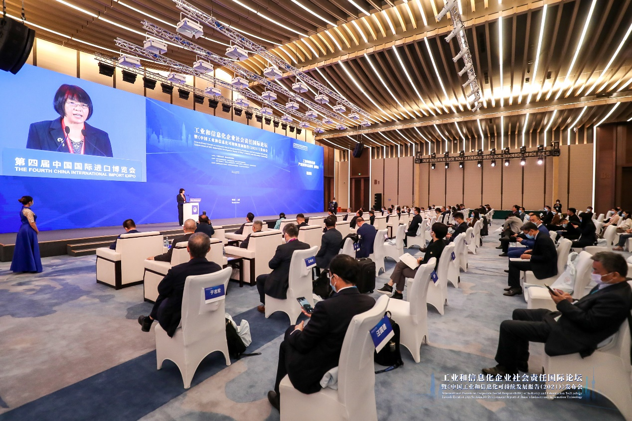 2021年11月7日,第四屆進博會工業和信息化企業社會責任國際論壇暨《中國工業和信息化可持續發展報告(2021)》發布會在上海國家會展中心成功舉辦。