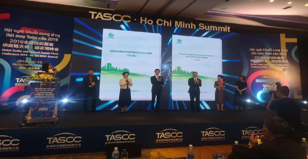 2019 年4月11日,在越南供應鏈峰會上,中國紡聯社責辦發布《中國紡織服裝企業負責任海外投資指引》。