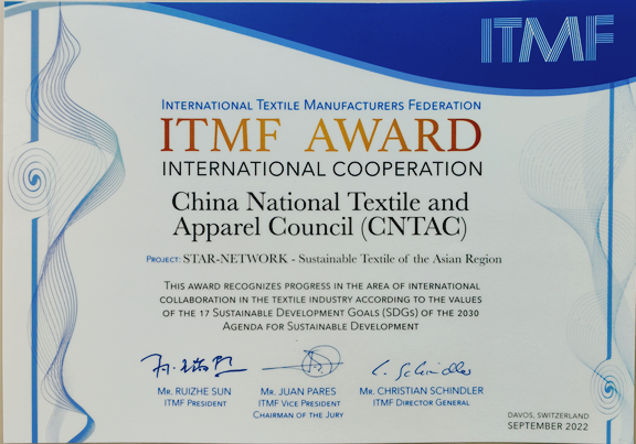 9月17-20日,2022國際紡織制造商聯(lián)合會(huì)(ITMF)年會(huì)在瑞士達(dá)沃斯成功舉辦。期間,亞洲地區(qū)可持續(xù)紡織網(wǎng)絡(luò)(STAR Network)榮獲首屆ITMF國際合作獎(jiǎng)。