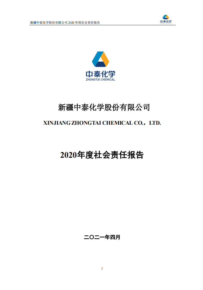 新疆中泰化學股份有限公司2020年度社會責任報告